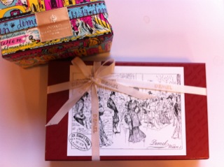 ブルーグレーと金色でお家の街並みが描いてあって