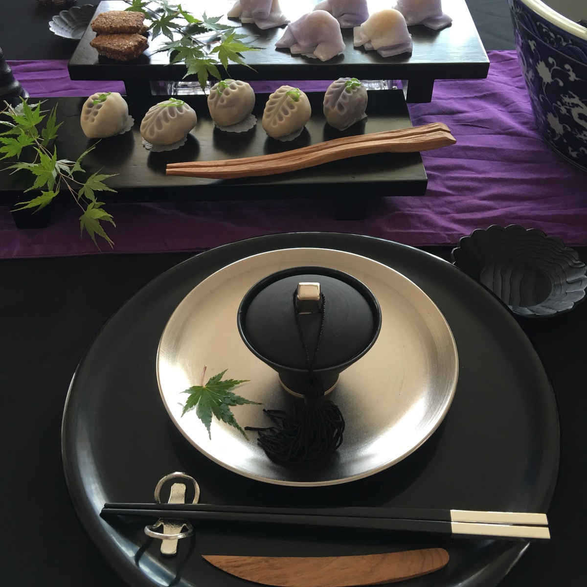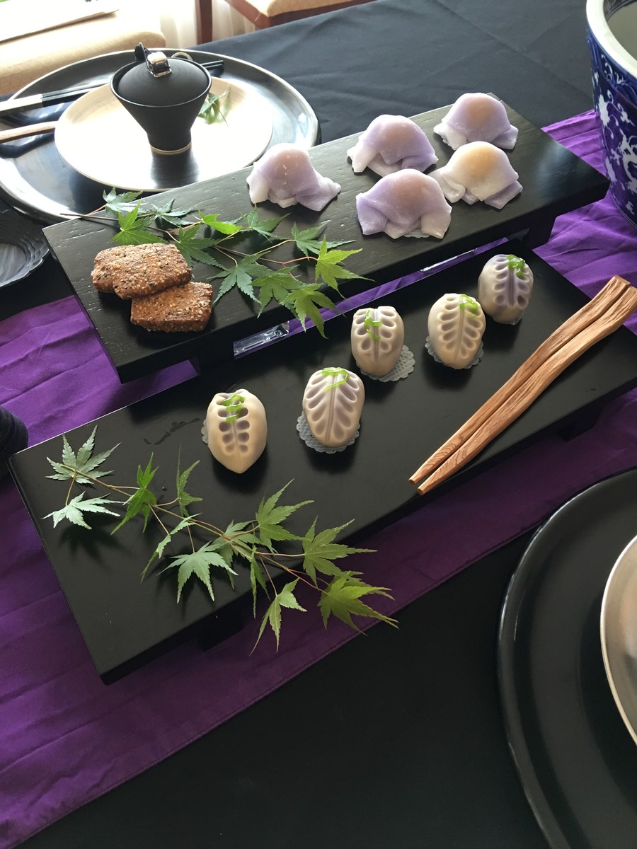二ヶ月ぶりの卯月の和菓子教室に行ってきました♪今回は端午の節句を題材にしたお菓子たち*\(^o^)/*兜を中心にした室礼は相変わらず美しい……我が家には男の子がいないので兜が新鮮……テーブルクロスもブラック×紫でカッコイイ〜〜♪( ´θ`)ノ 今日は『カキツバタ』 ...
