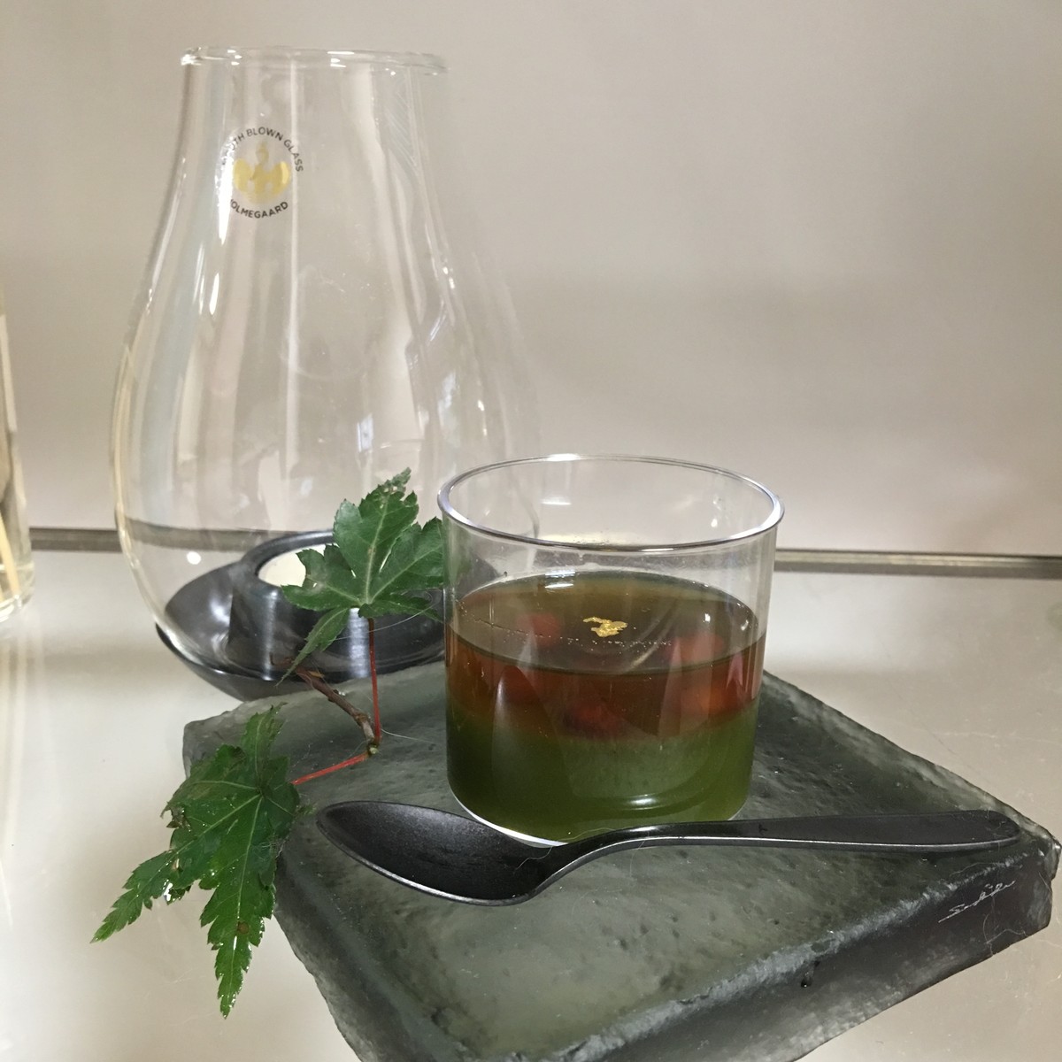 もう一つのお菓子は抹茶とほうじ茶の羊羹(羊羹と言うよりゼリーのような感じ)