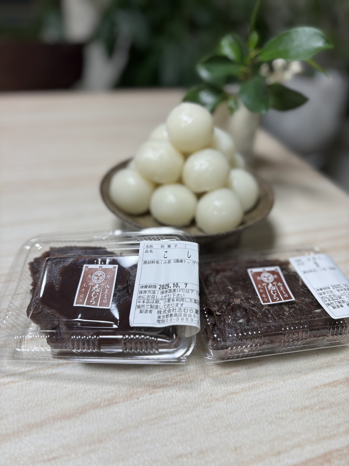 目白の老舗和菓子屋志むらで購入したのですが、粒あんとこし餡の両方を買って楽しめたこと