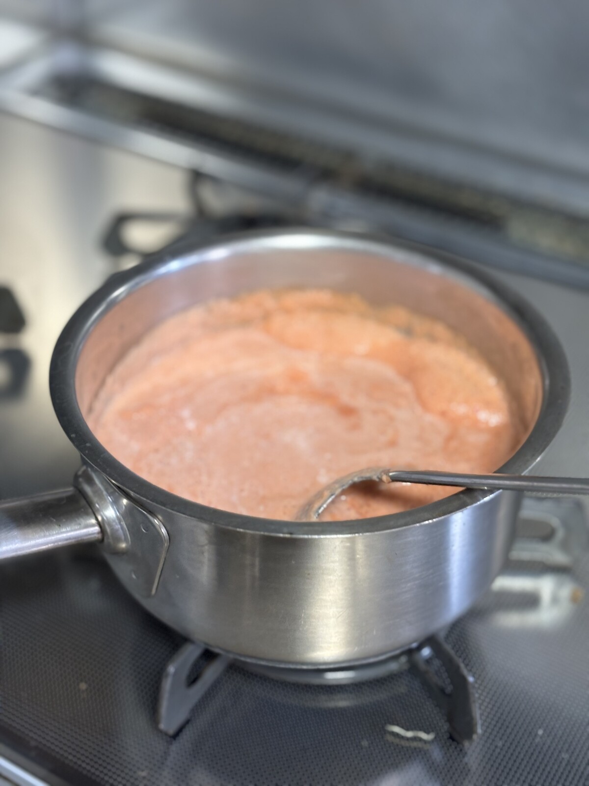 バイタミックスはまわし続ければ温かいスープも出来ますが、最後の温めは鍋で…